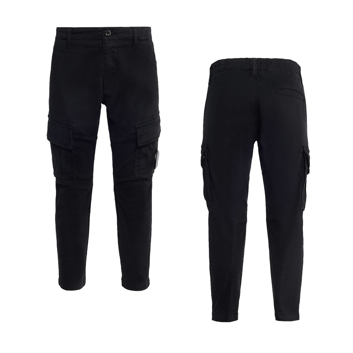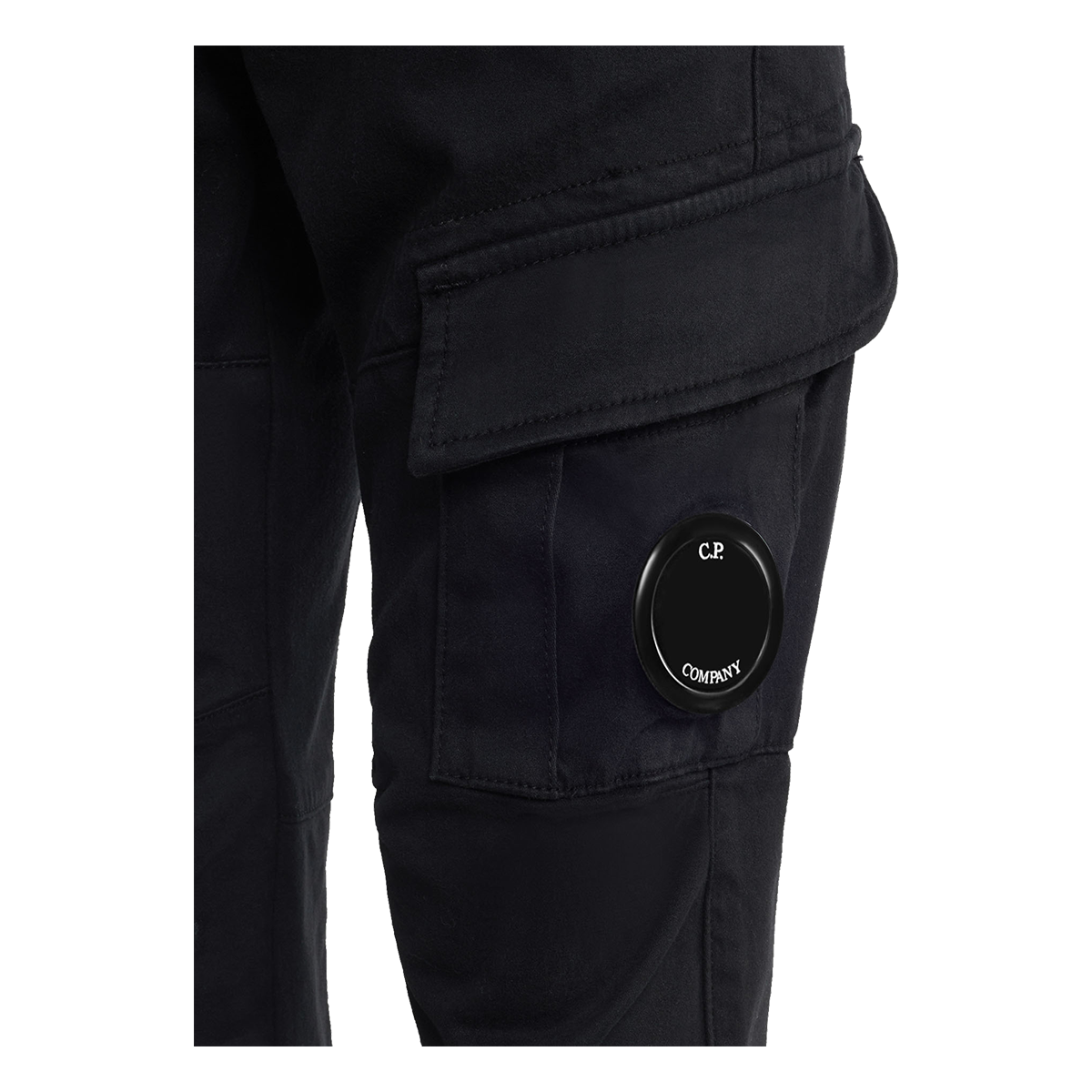 CP COMPANY JUNIOR STRETCH SATEEN CARGO TROUSERS IN BLACK