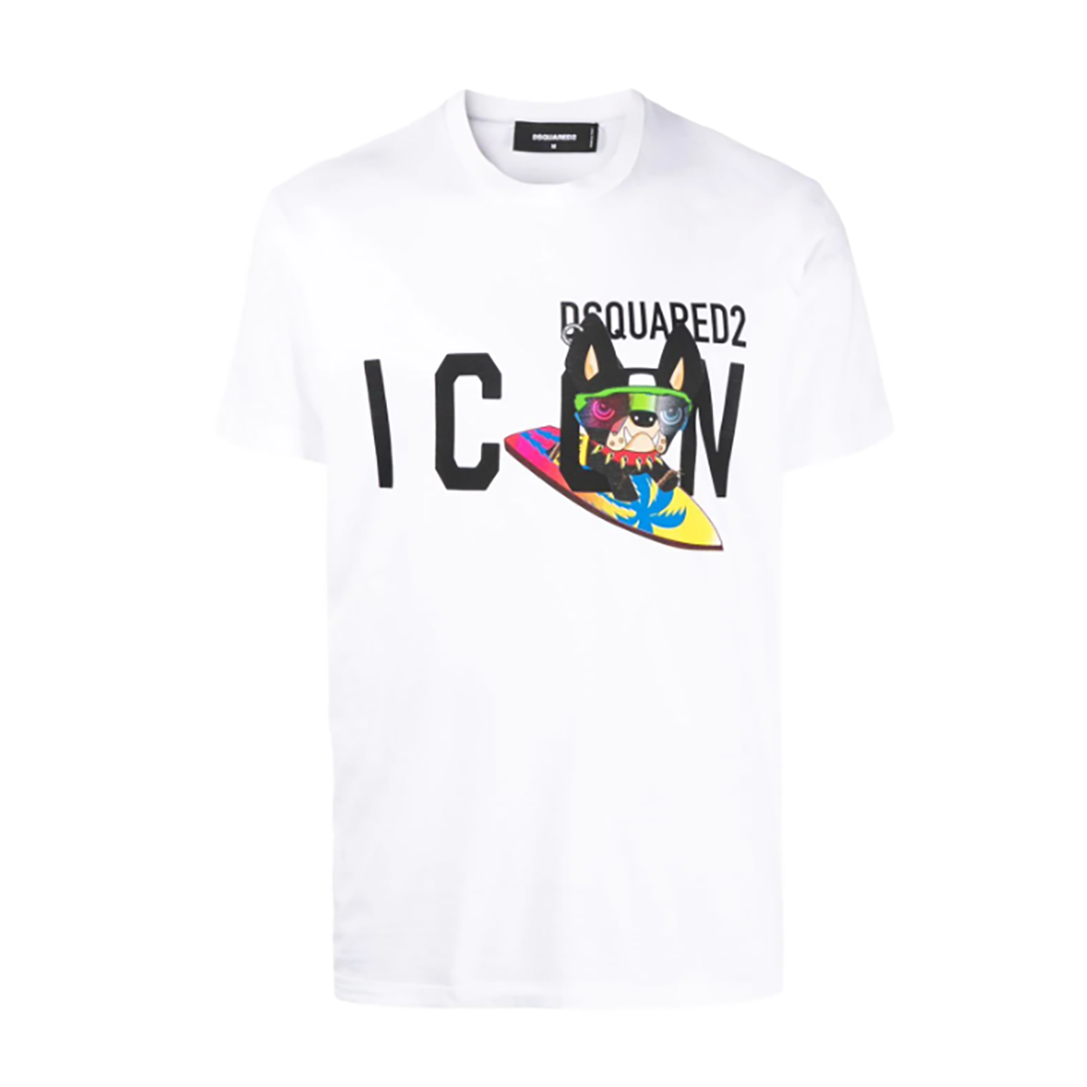 DSQUARED2 ICON DOG PRINT T-SHIRT IN WHITE