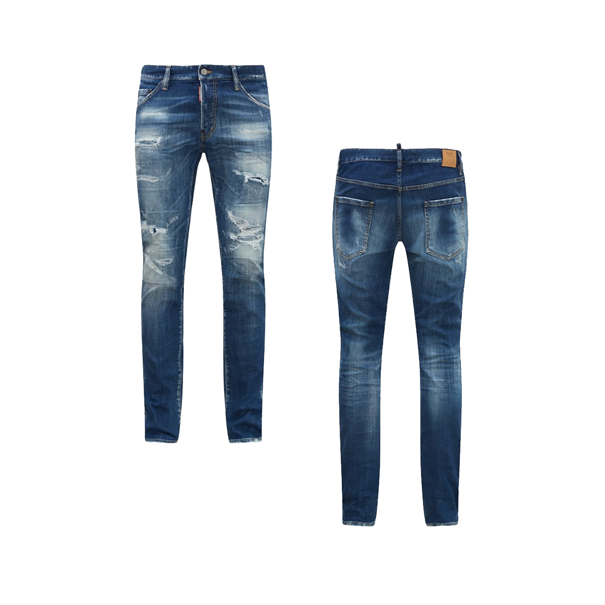 DSQUARED2 SEXY TWIST DISTRESSED STRAIGHT LEG JEANS IN BLUE