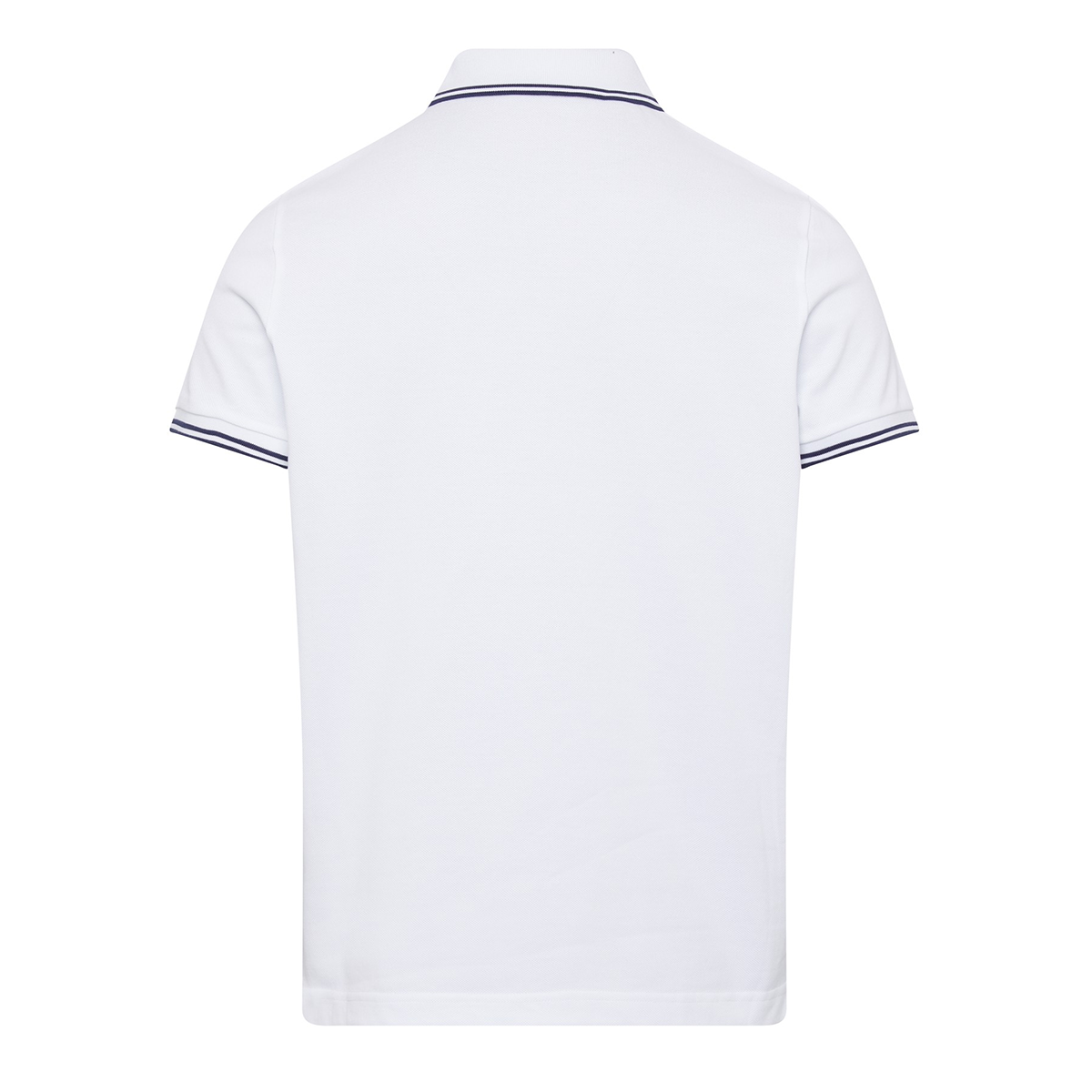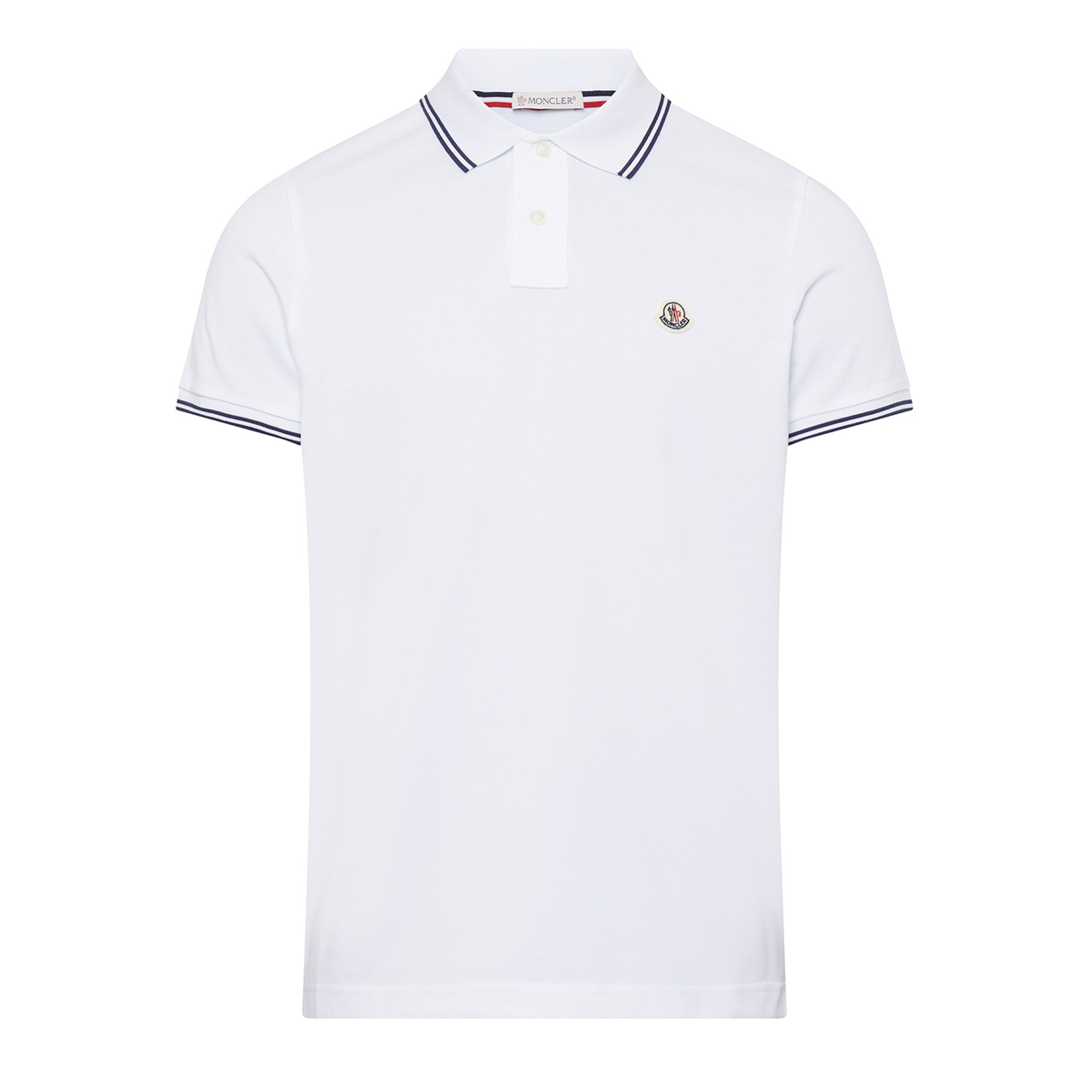 Trimmed with the brand's signature bicolor stripes, this regular-fit Moncler polo shirt in white is made from classic cotton piqué. The design features a subtle logo appliqué on the chest.