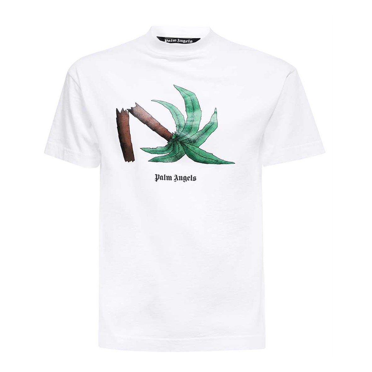 SHORT SLEEVES T-SHIRT IN WHITE WITH BROKEN PALM GRAPHIC PRINTED AT FRONT. "PALM ANGELS" LOGO PRINTED IN BLACK AT FRONT AND AT BACK. CREWNECK COLLAR.