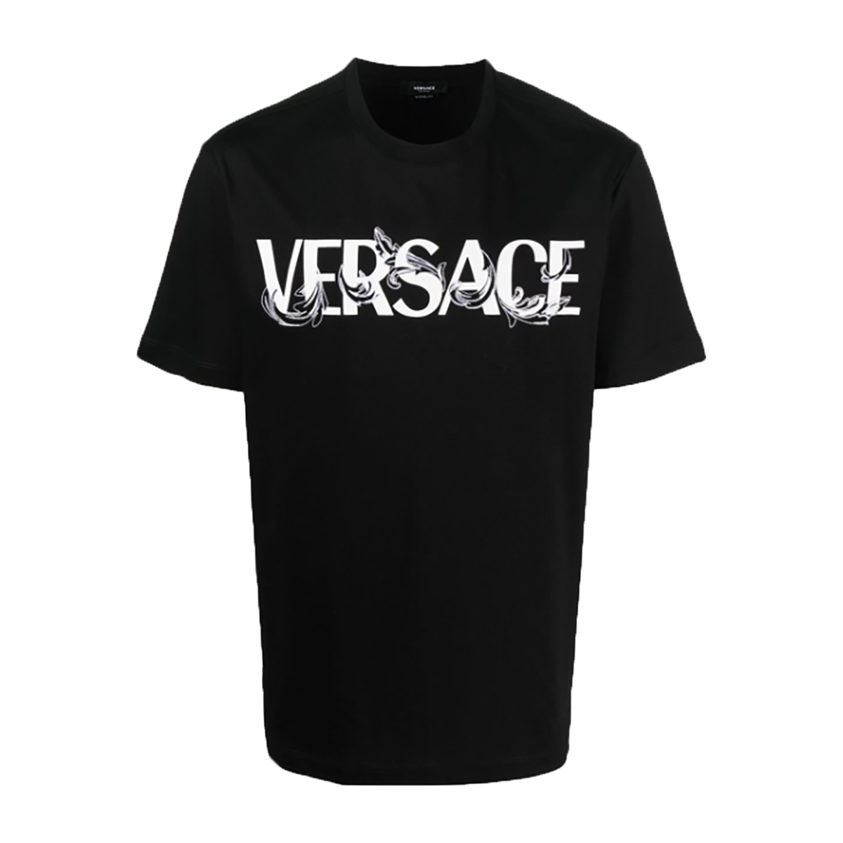 VERSACE BAROCCO SILHOUETTE LOGO T-SHIRT IN BLACK