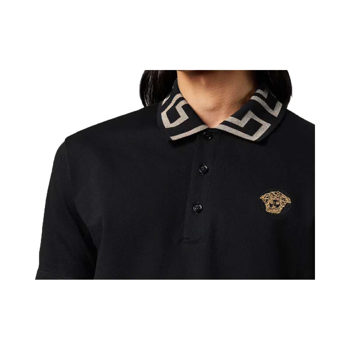 VERSACE GRECA SHORT SLEEVE POLO IN BLACK